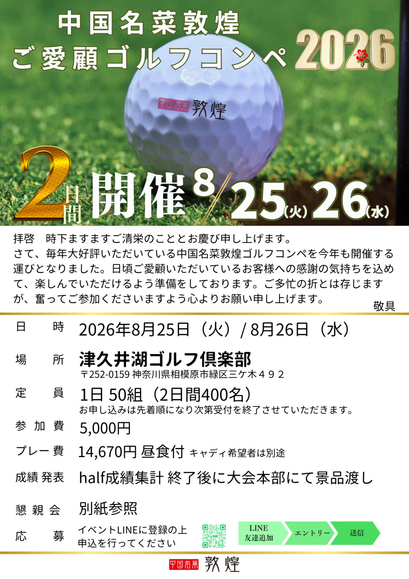 今年も開催決定!2026中国名菜敦煌ゴルフコンペ!!